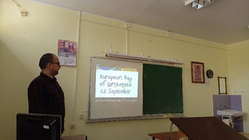 У петак, 26.09.2025. године, наставник енглеског језика, Милан Обрадовић, заједно са ученицима 1–б одељења, дали су свој допринос обележавању Европског дана језика.