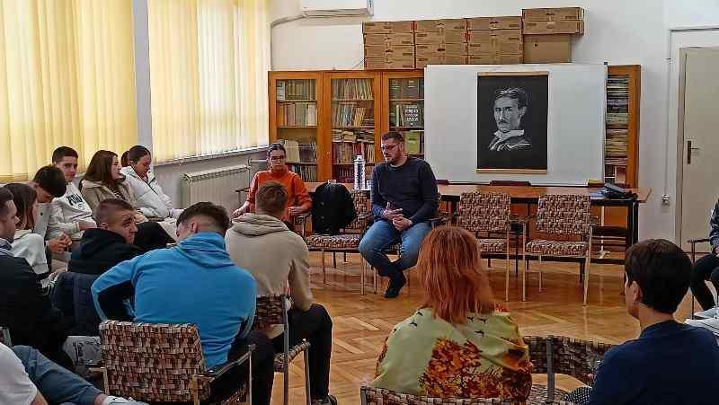 окт 1 2025 Предавање за ученике Новости У уторак, 30.09.2025. године, одржан је округли сто и радионица за ученике на тему „Друштвени активизам младих“ у организацији представника Форума младих из Новог Сада, Стефана Иветића.