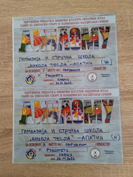 На окружном такмичењу у рукомету, одржаном 26.11.2025. године у Сивцу, женска екипа наше школе освојила је ПРВО МЕСТО и ПЛАСМАН НА МЕЂУОКРУЖНО ТАКМИЧЕЊЕ, док је мушка екипа освојила ТРЕЋЕ МЕСТО.