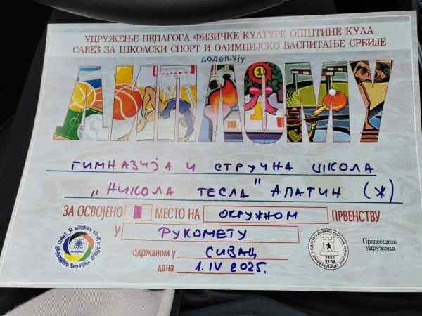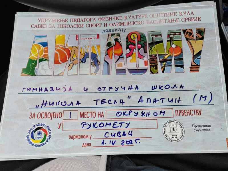 7. април 2025. На окружном такмичењу у рукомету, које је одржано у Сивцу 1. априла, женска и мушка екипа наше школе је освојила прво место. Професорица физичког васпитања Драгана Узелац. ◄ 1 2 Facebook Twitter Linkedin SMS WhatsApp
